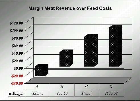 Figure 2 is an illustration of the difference in meat yields achievable when treating the birds as ‘Production Units’ and ‘Feed Cost’ Units. The article “Potential Meat Yield of Ostrich” discusses and proves the production potential of Ostrich. [3] This discussion will be limited to the economic benefits.